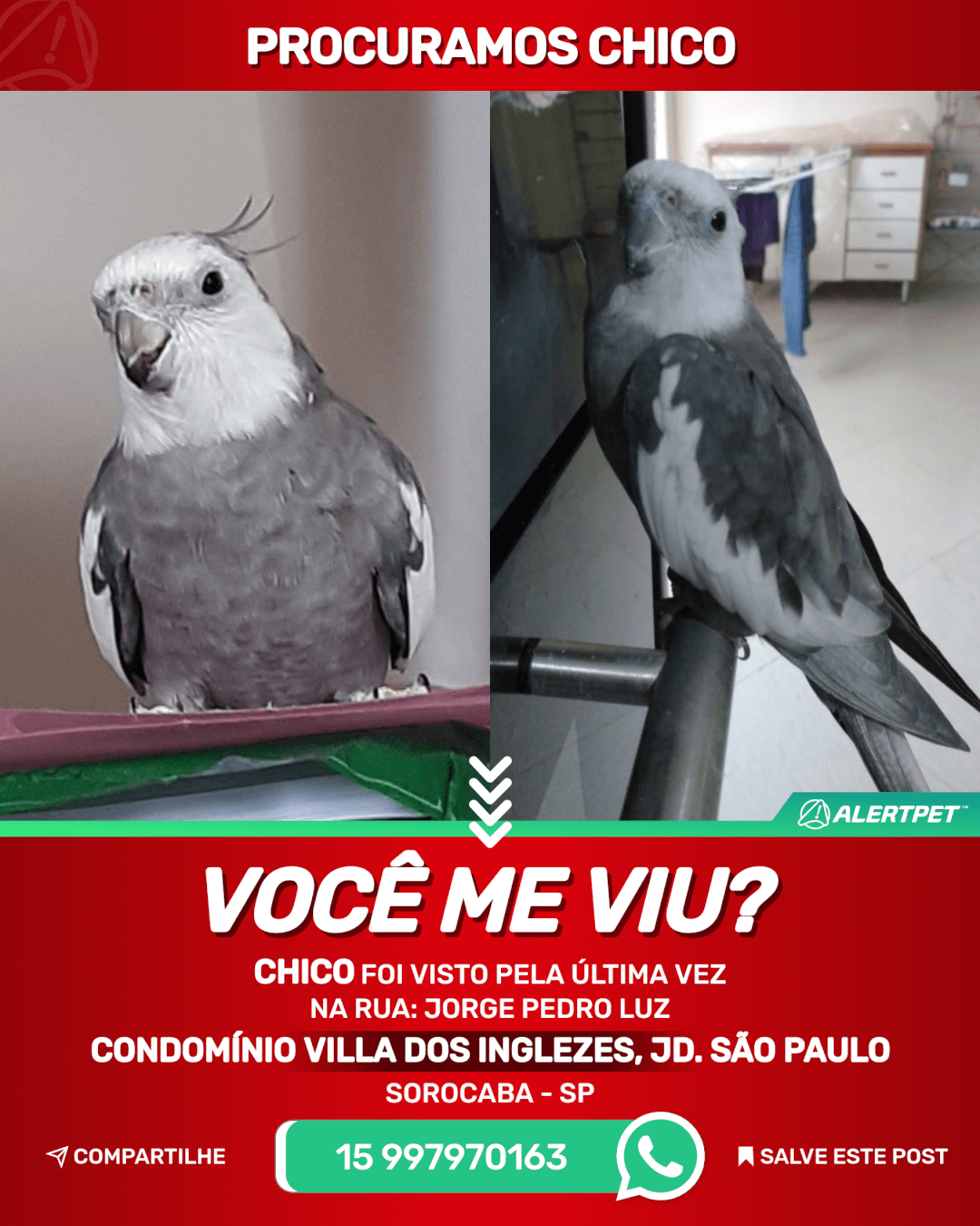 Caso tenha informações de um pet desaparecido comunicar imediatamente os tutores pelo telefone que está no anúncio.