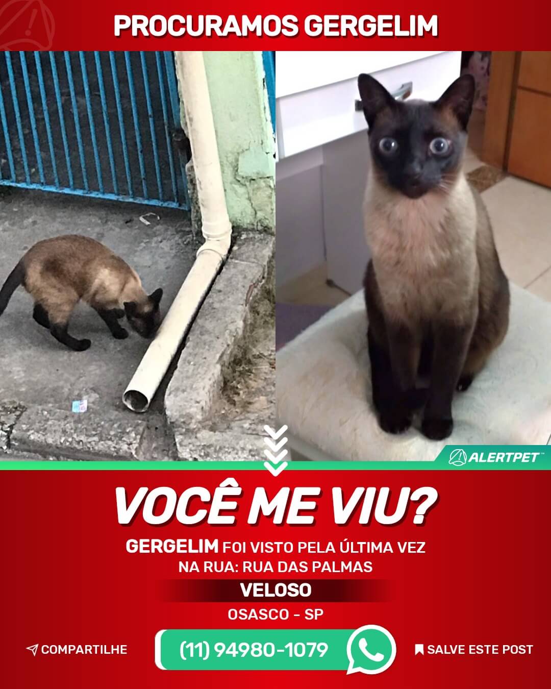 Caso tenha informações de um pet desaparecido comunicar imediatamente os tutores pelo telefone que está no anúncio.
