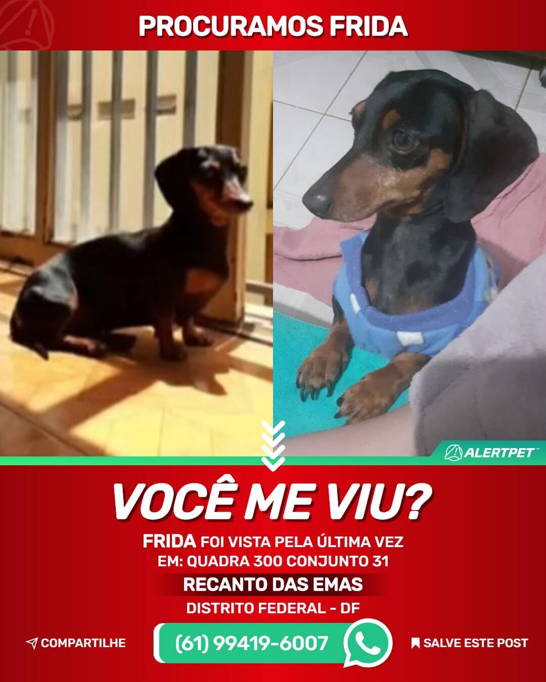 Caso tenha informações de um pet desaparecido comunicar imediatamente os tutores pelo telefone que está no anúncio.