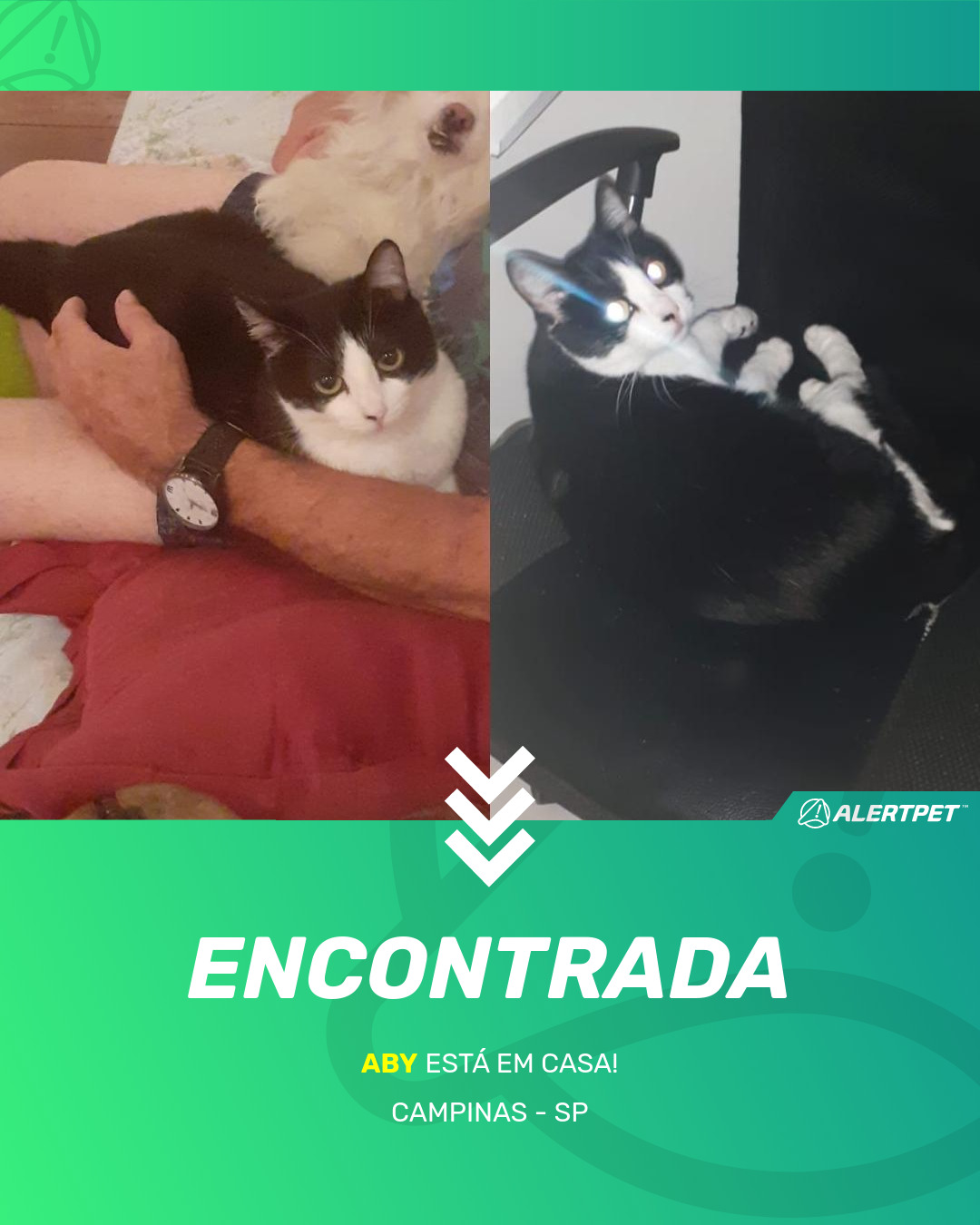 Depois de dois meses a cadelinha foi finalmente localizada graças a um anúncio da AlertPet