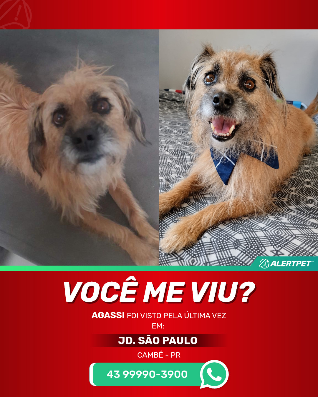 #AlertPet #Procurase #CachorroDesaparecido #Cambe #ProcuramosAgassi