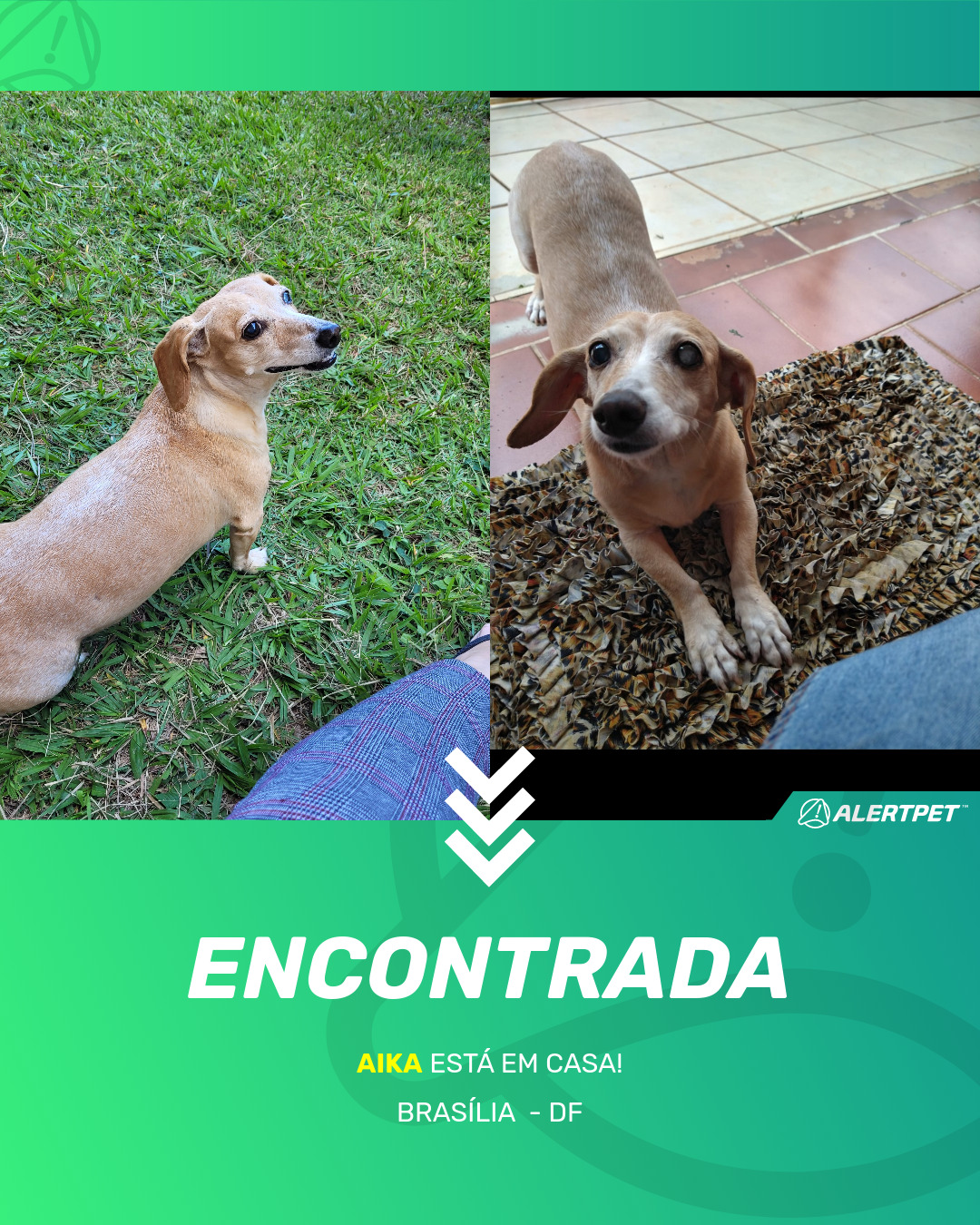 Depois de dois meses a cadelinha foi finalmente localizada graças a um anúncio da AlertPet
