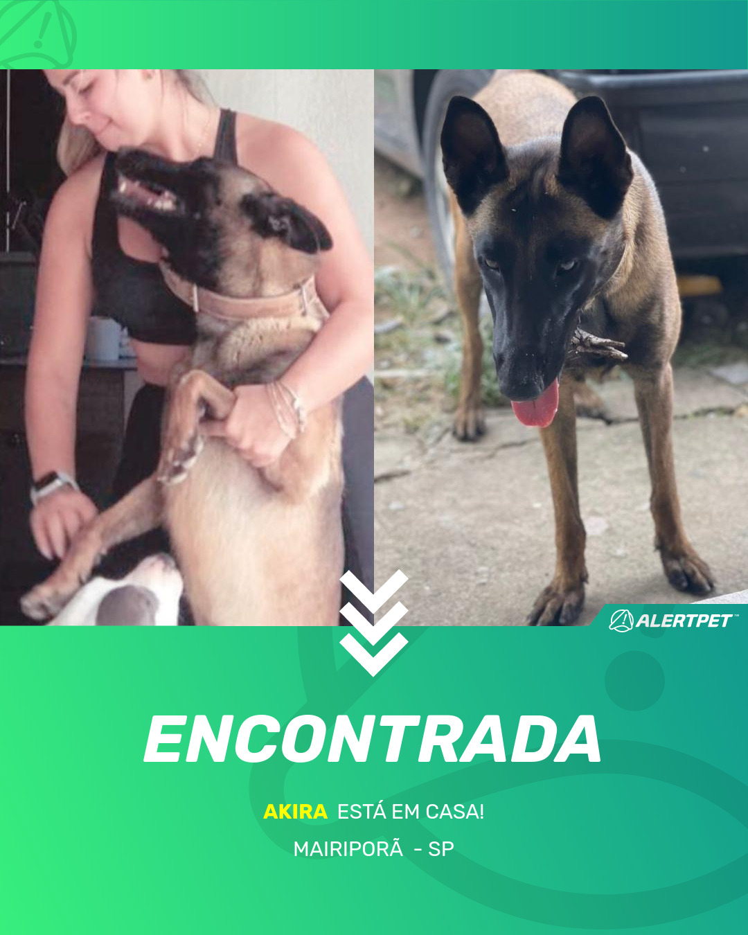 Depois de dois meses a cadelinha foi finalmente localizada graças a um anúncio da AlertPet