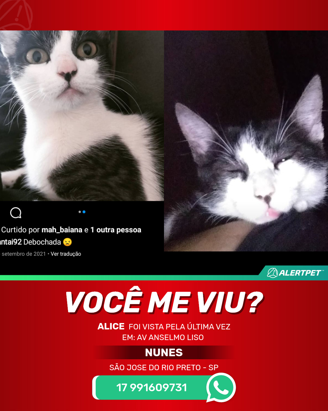 #AlertPet #Procurase #GatoDesaparecido #SaoJoseDoRioPreto #ProcuramosAlice