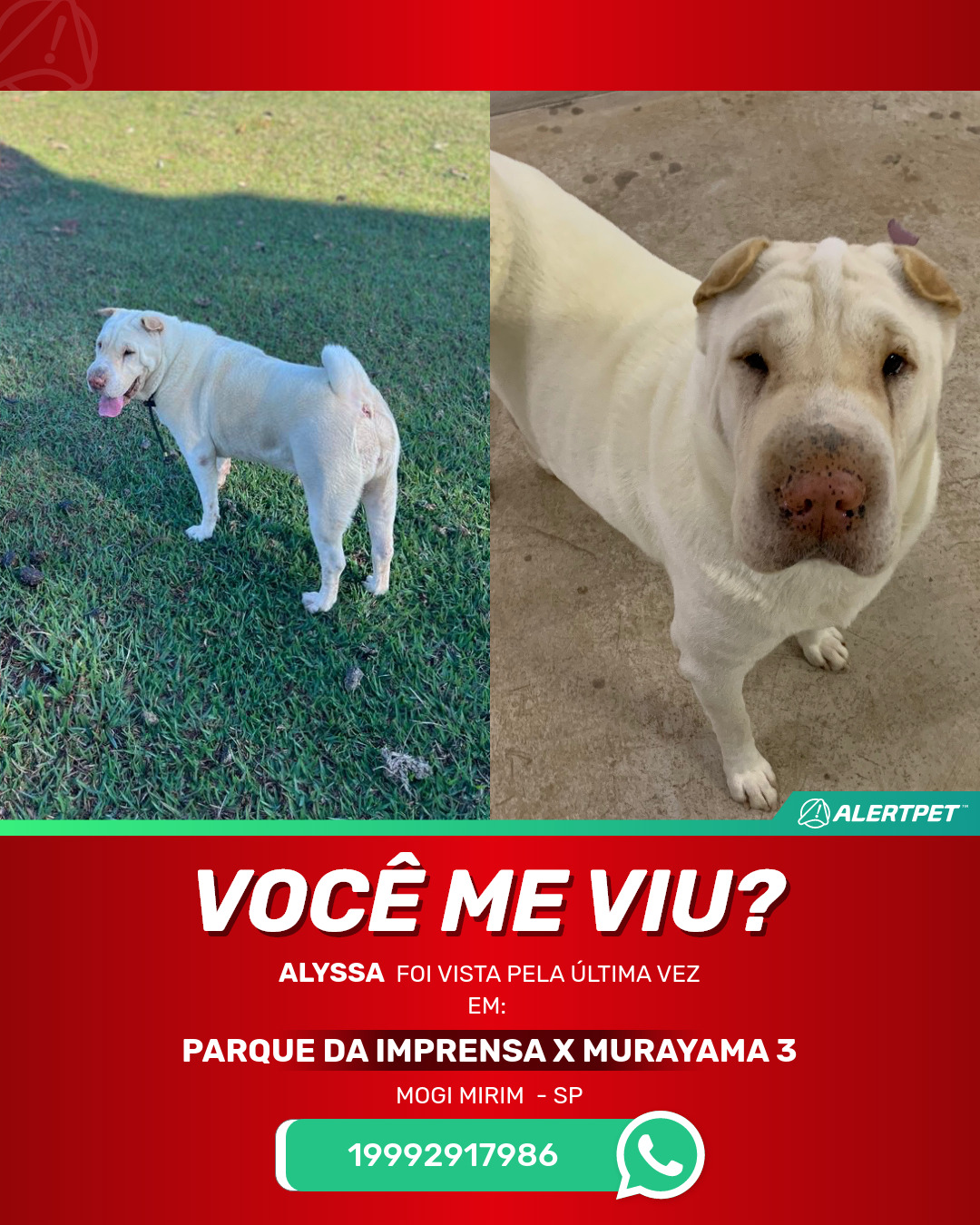 #AlertPet #Procurase #CachorroDesaparecido #MogiMirim #ProcuramosAlyssa