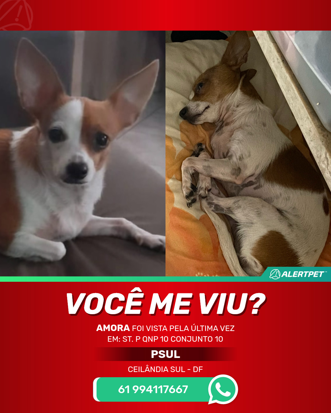 #AlertPet #Procurase #CachorroDesaparecido #CeilAndiaSul #ProcuramosAmora