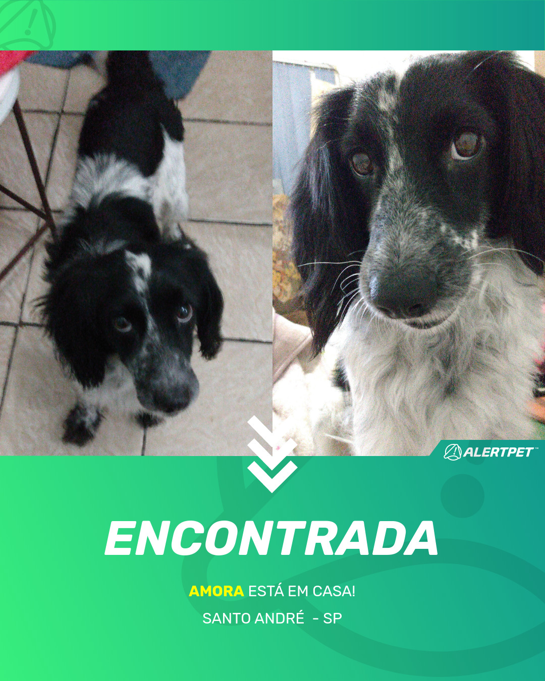 Depois de dois meses a cadelinha foi finalmente localizada graças a um anúncio da AlertPet