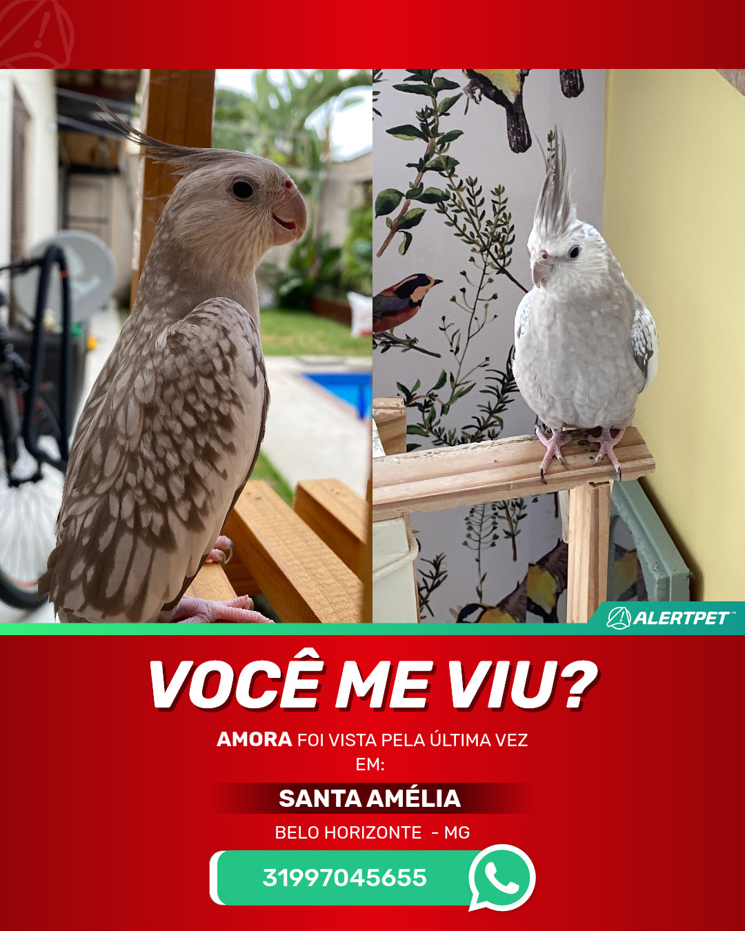#AlertPet #Procurase #PassaroDesaparecido #BeloHorizonte #ProcuramosAmora
