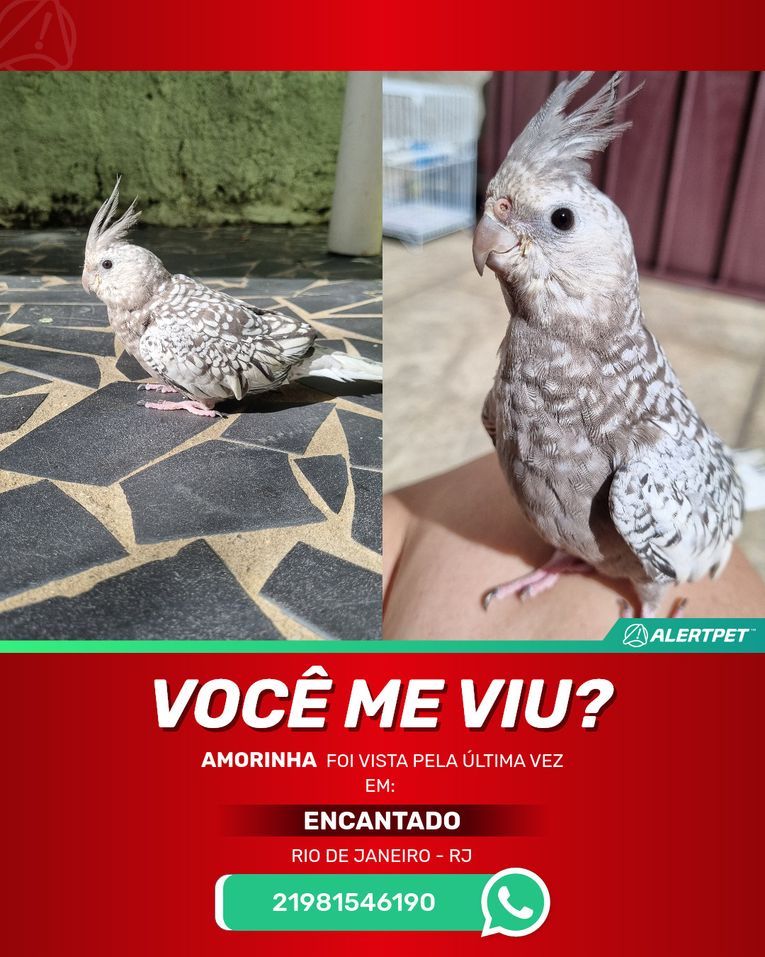 #AlertPet #Procurase #PassaroDesaparecido #RioDeJaneiro #ProcuramosAmorinha