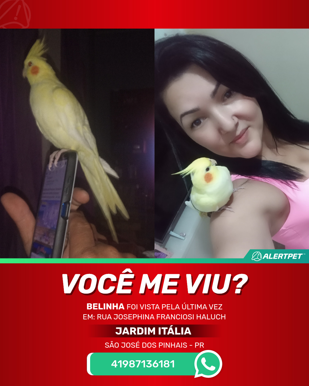 #AlertPet #Procurase #PassaroDesaparecido #SaoJoseDosPinhais #ProcuramosAndressaFrancianeKawaharaKrauss