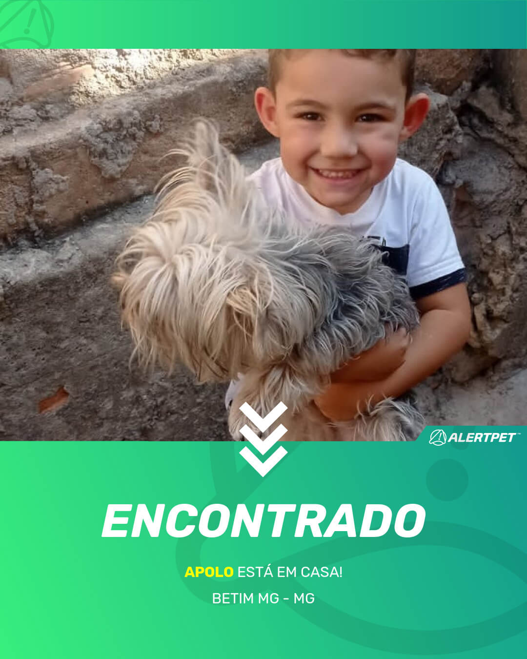 Sou mãe de uma criança de 3 anos que chora ao falar do Apollo ele ganhou de presente no dia das crianças e nunca mais ficou sem o companheiro peço que pelo amor de Deus quem tiver com o apolo pense no meu filho que está muito triste ele só tem 3 anos de idade apolo foi e sempre será seu fiel amigo único cachorrinho que ele tem peço que Deus que ele volte bem pra casa .