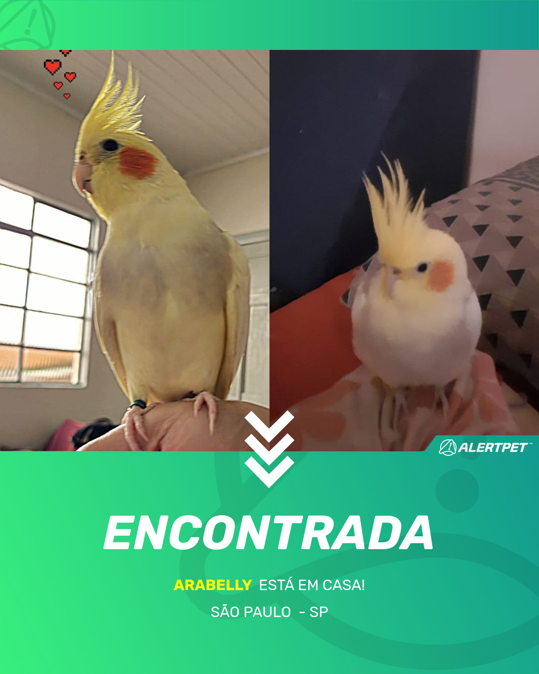 Depois de dois meses a cadelinha foi finalmente localizada graças a um anúncio da AlertPet