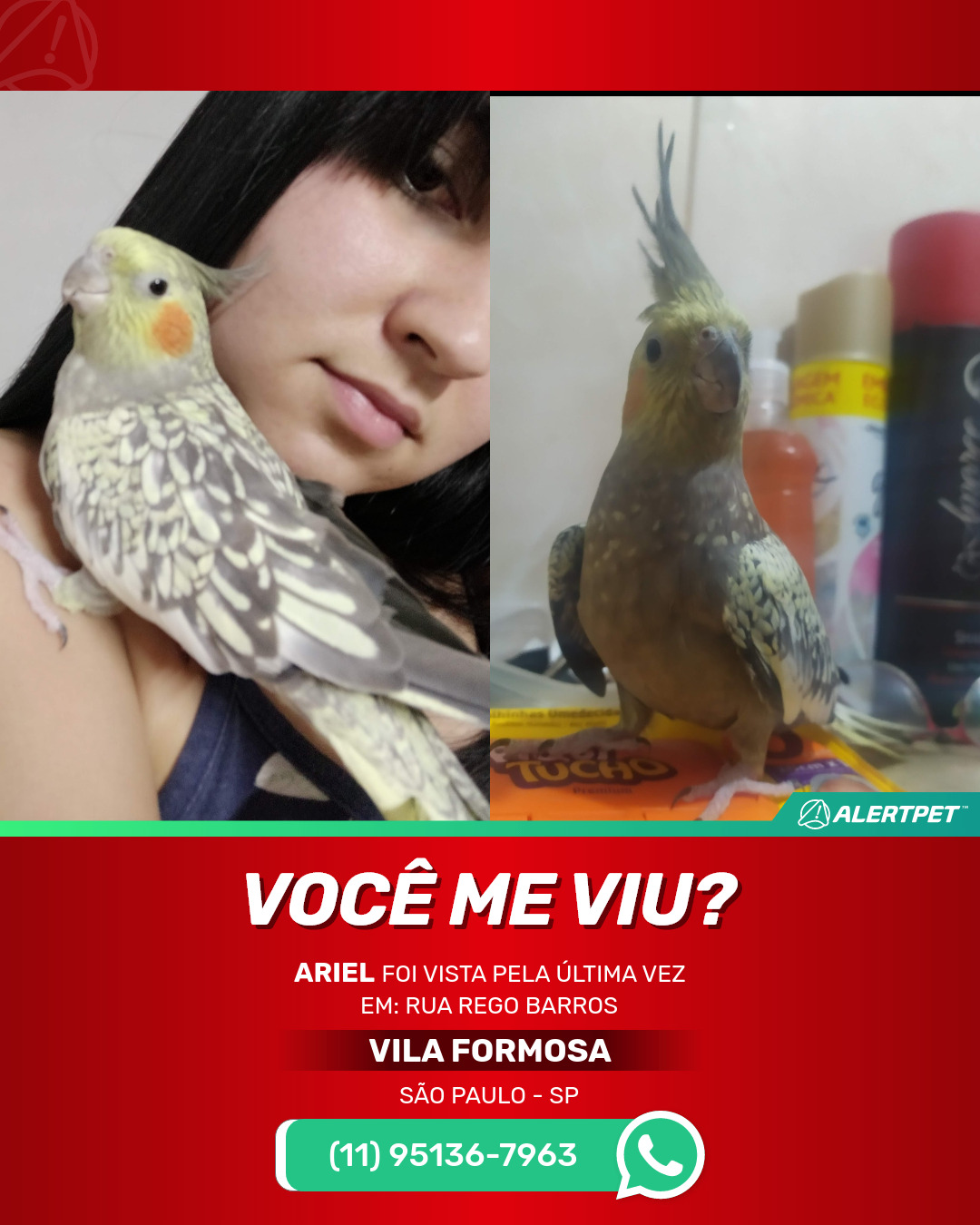 #alertpet #procurase #PássaroDesaparecido #São Paulo #procuramosAriel