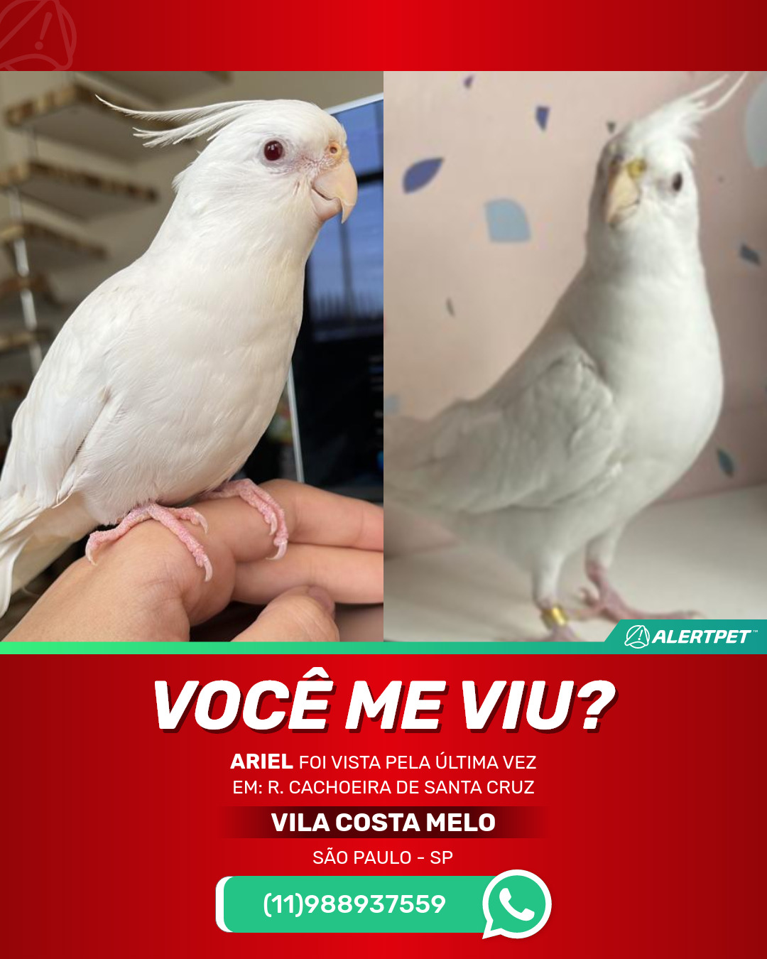 #AlertPet #Procurase #PassaroDesaparecido #SaoPaulo #ProcuramosAriel