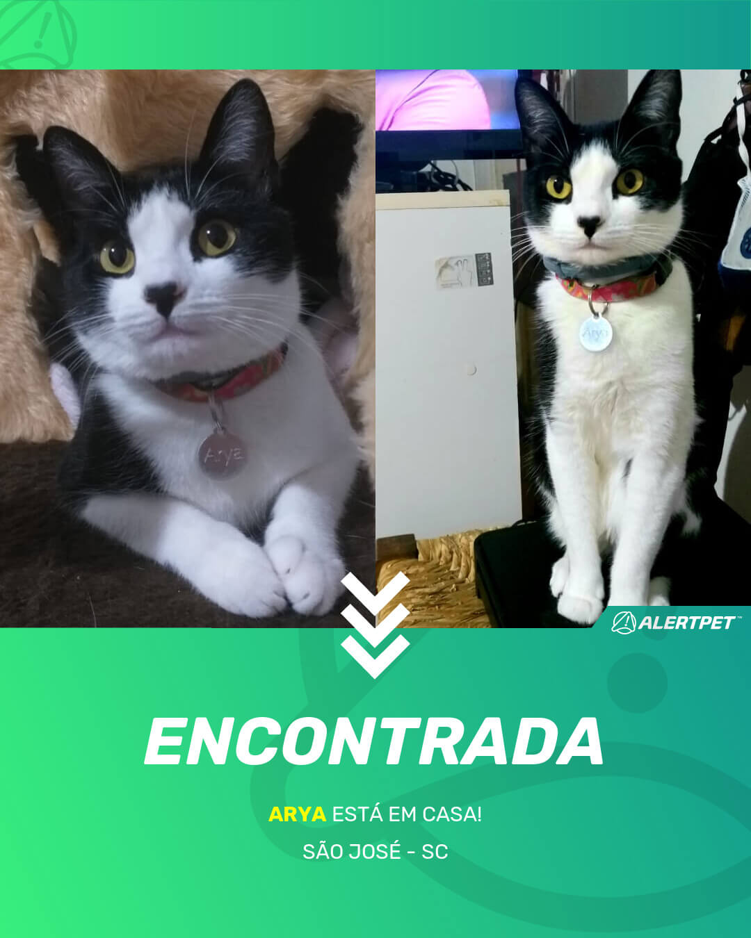 Depois de dois meses a cadelinha foi finalmente localizada graças a um anúncio da AlertPet