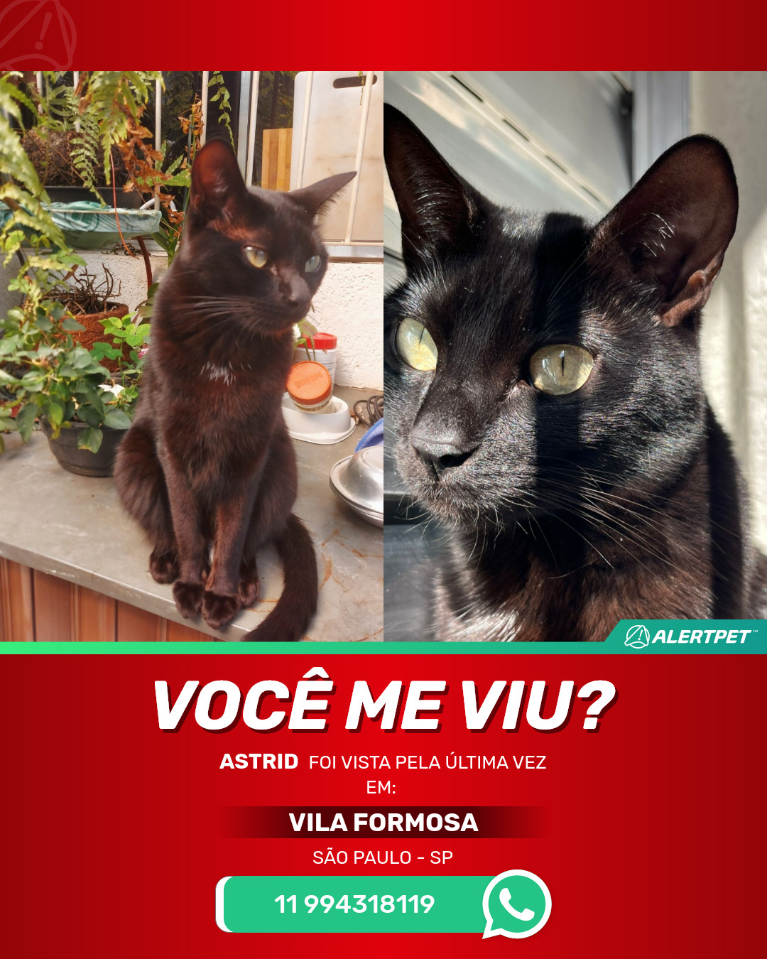 #AlertPet #Procurase #GatoDesaparecido #SaoPaulo #ProcuramosAstrid