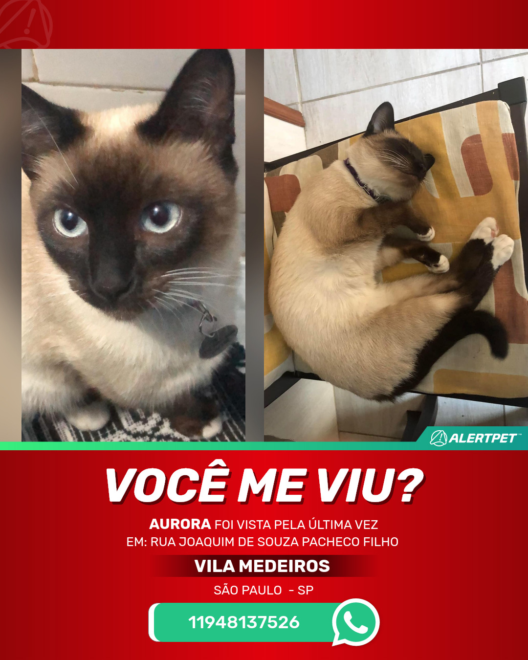 #AlertPet #Procurase #GatoDesaparecido #SaoPaulo #ProcuramosAurora
