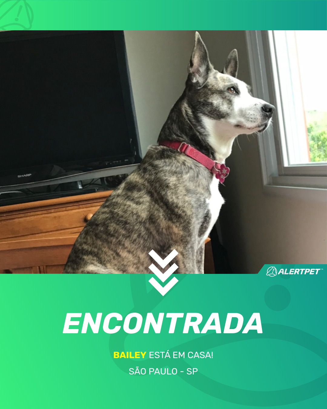 Depois de dois meses a cadelinha foi finalmente localizada graças a um anúncio da AlertPet