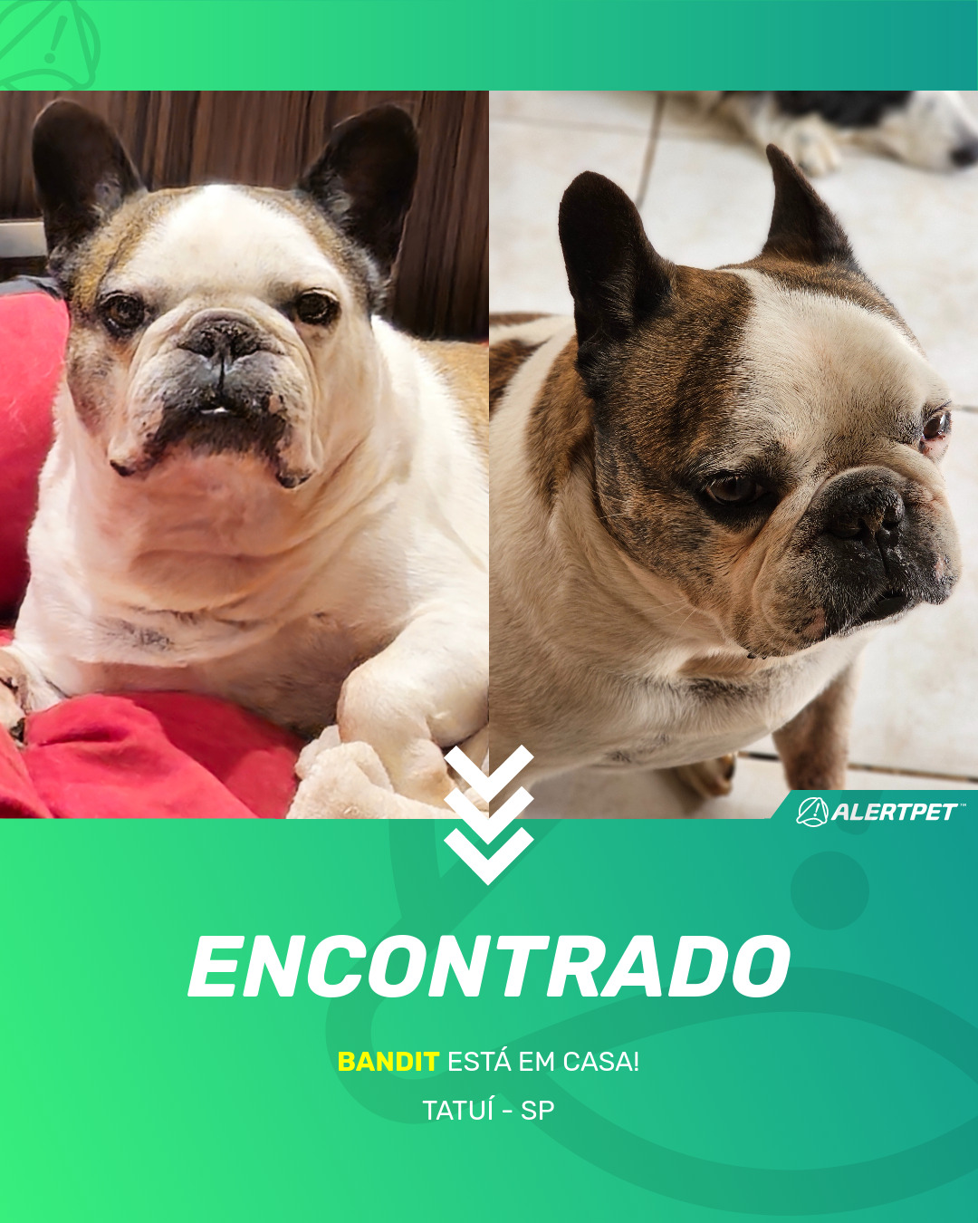 Depois de dois meses a cadelinha foi finalmente localizada graças a um anúncio da AlertPet