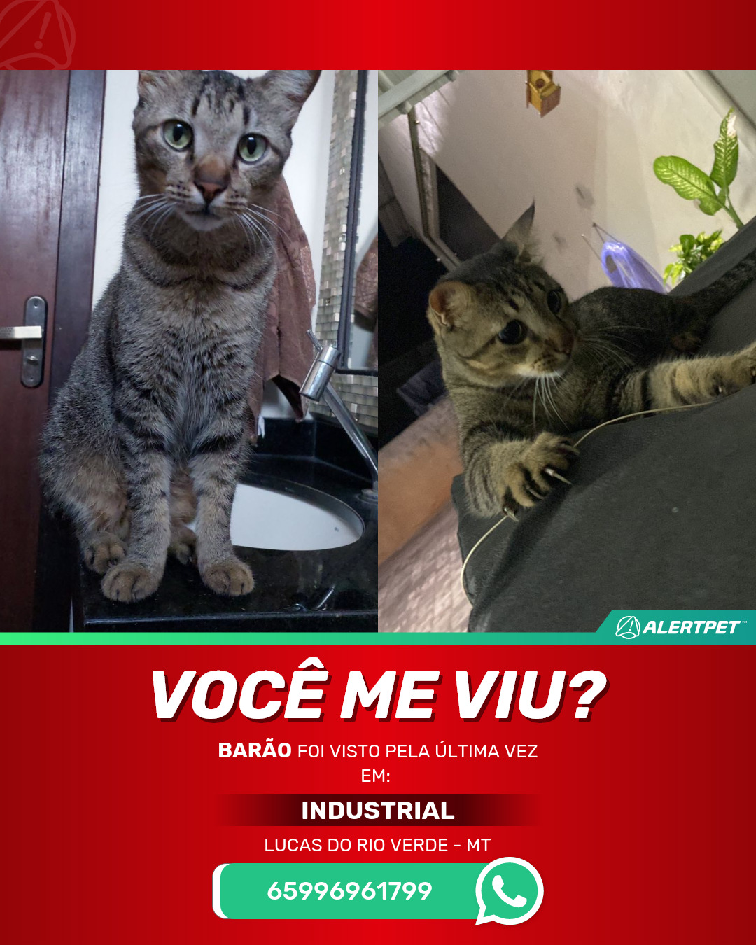 #AlertPet #Procurase #GatoDesaparecido #LucasDoRioVerde #ProcuramosBarão