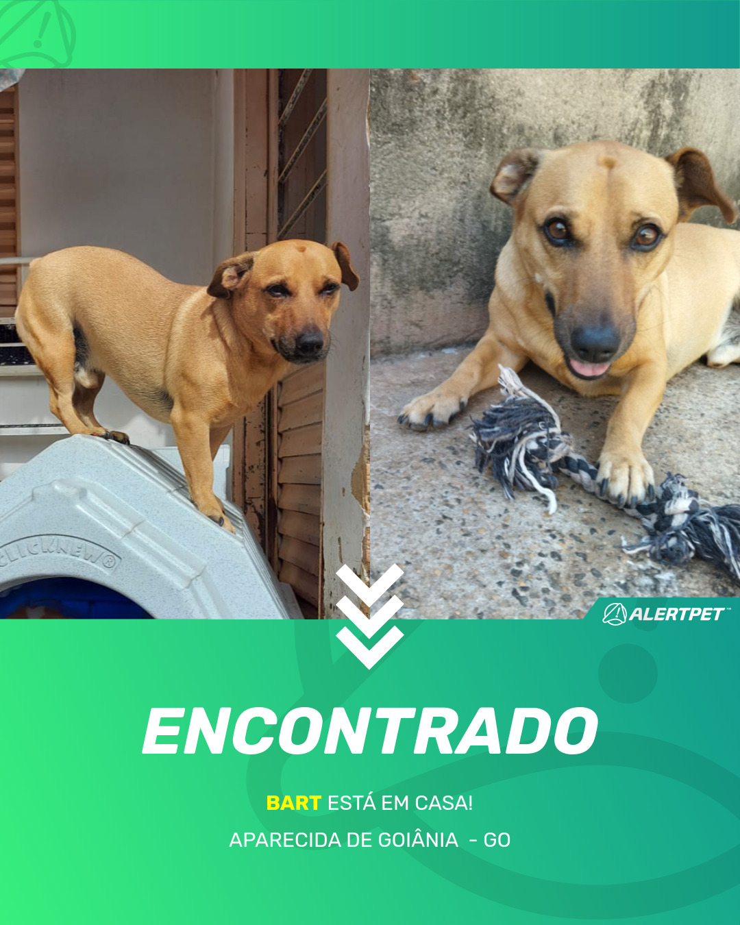 Depois de dois meses a cadelinha foi finalmente localizada graças a um anúncio da AlertPet
