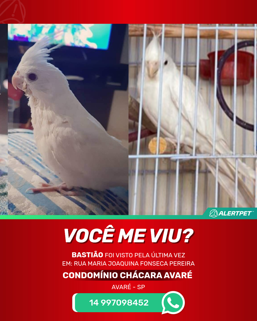 #alertpet #procurase #PássaroDesaparecido #Avaré #procuramosBastião