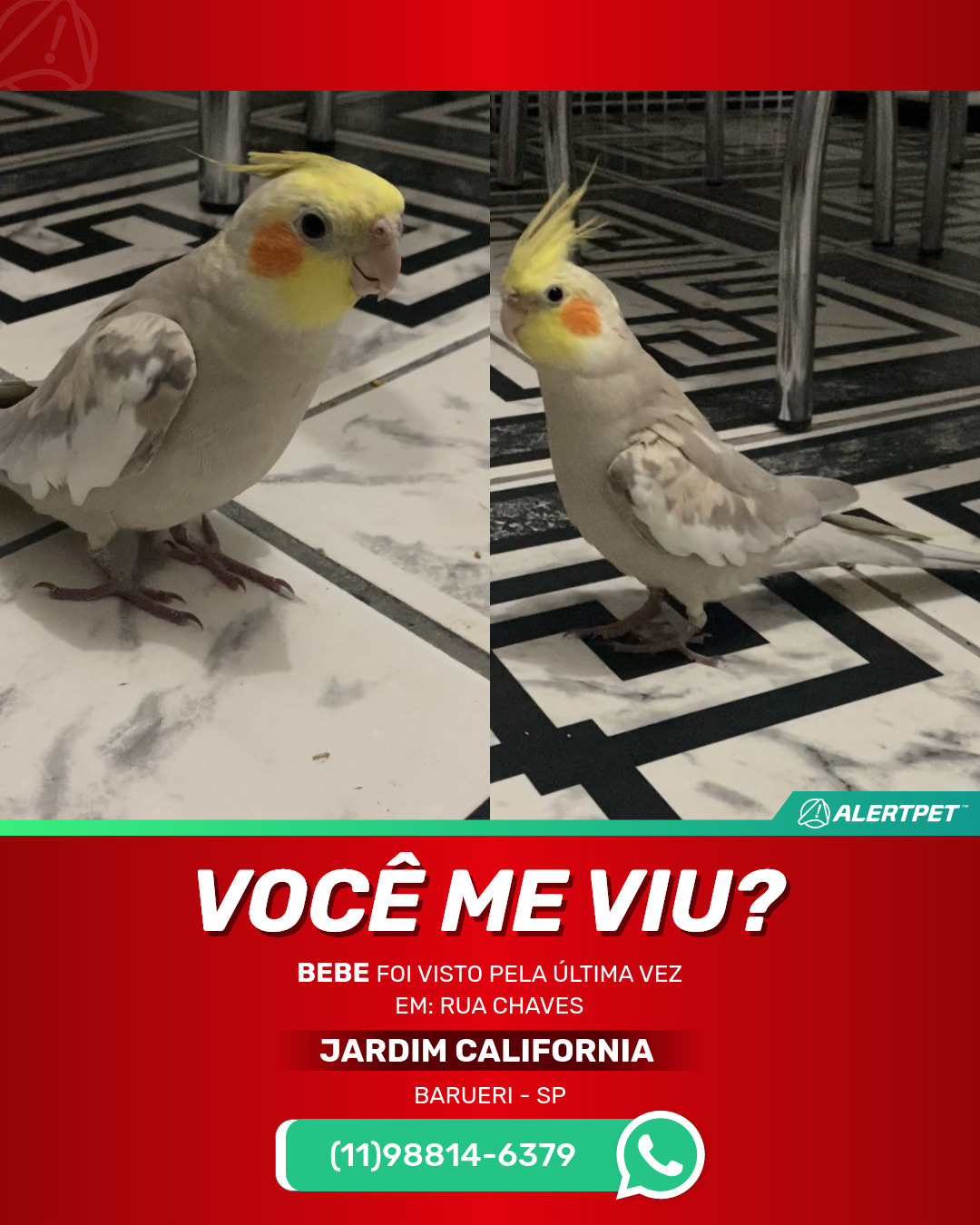 #AlertPet #Procurase #PassaroDesaparecido #Barueri #ProcuramosBebe