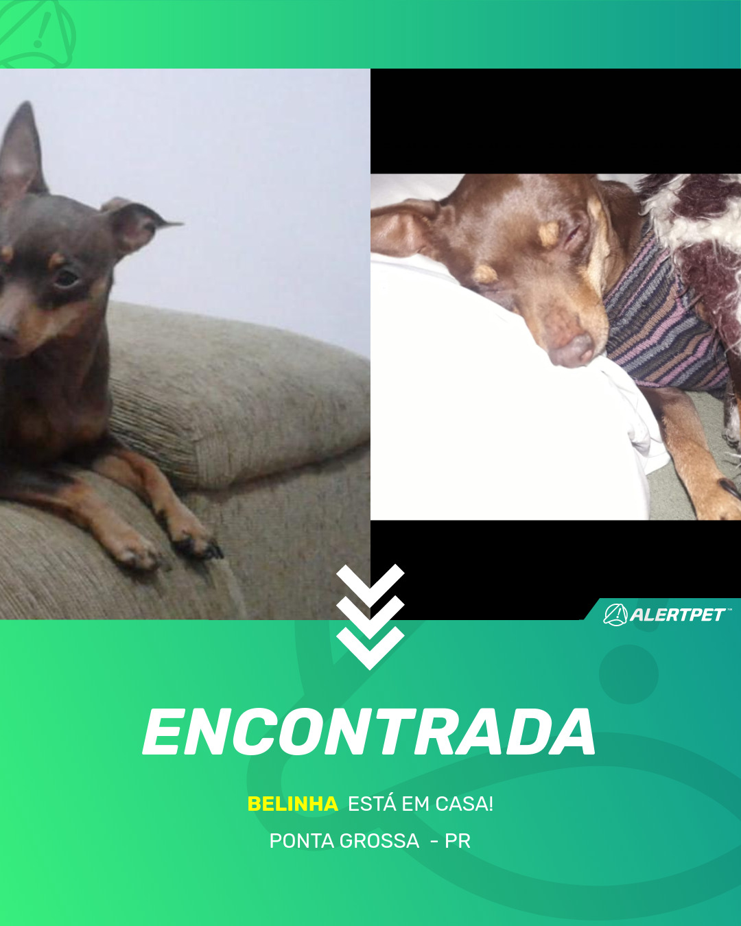 Depois de dois meses a cadelinha foi finalmente localizada graças a um anúncio da AlertPet