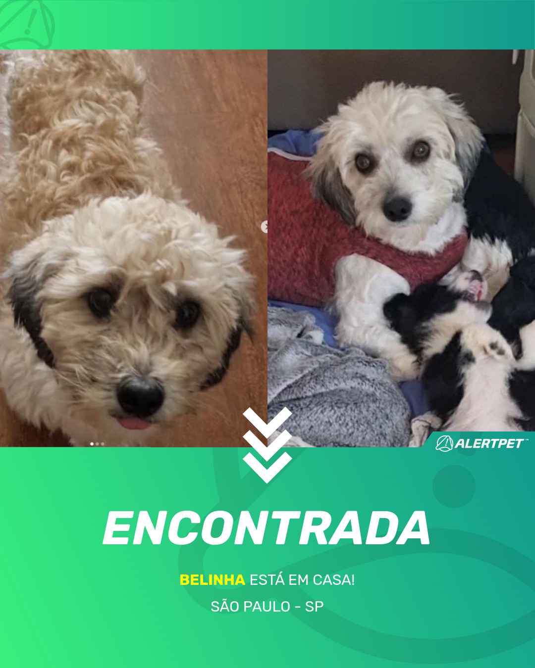 Depois de dois meses a cadelinha foi finalmente localizada graças a um anúncio da AlertPet