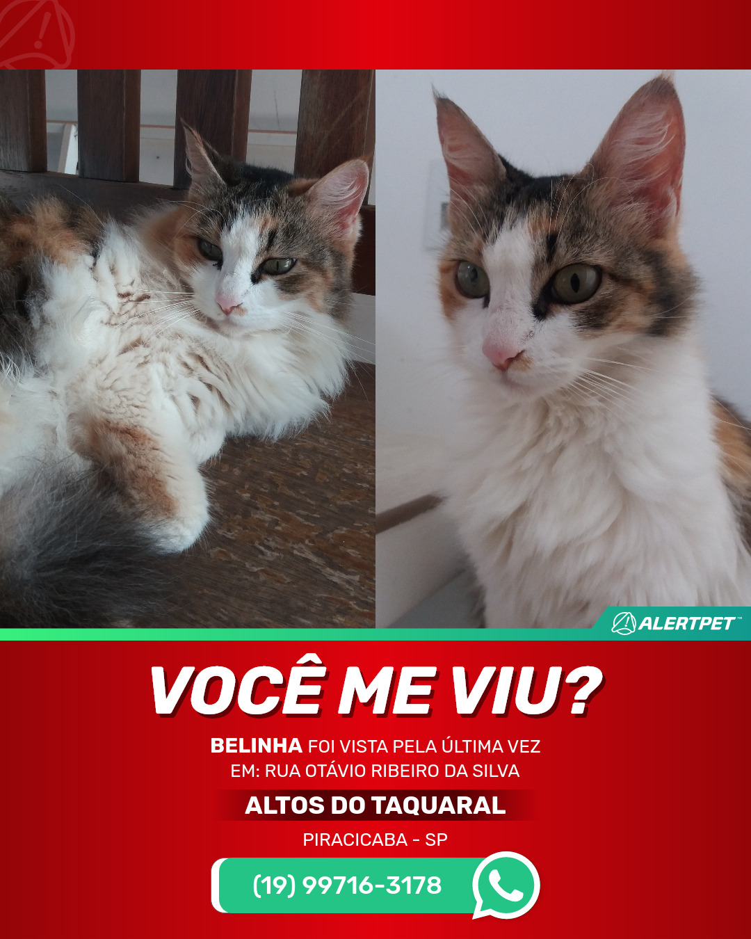 #AlertPet #Procurase #GatoDesaparecido #Piracicaba #ProcuramosBelinha