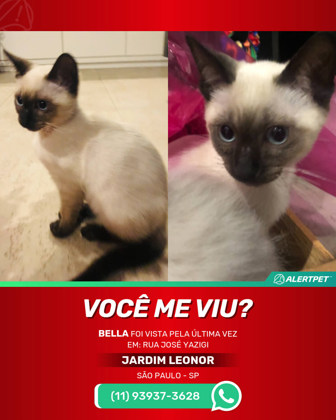 #alertpet #procurase #GatoDesaparecido #São Paulo #procuramosBELLA
