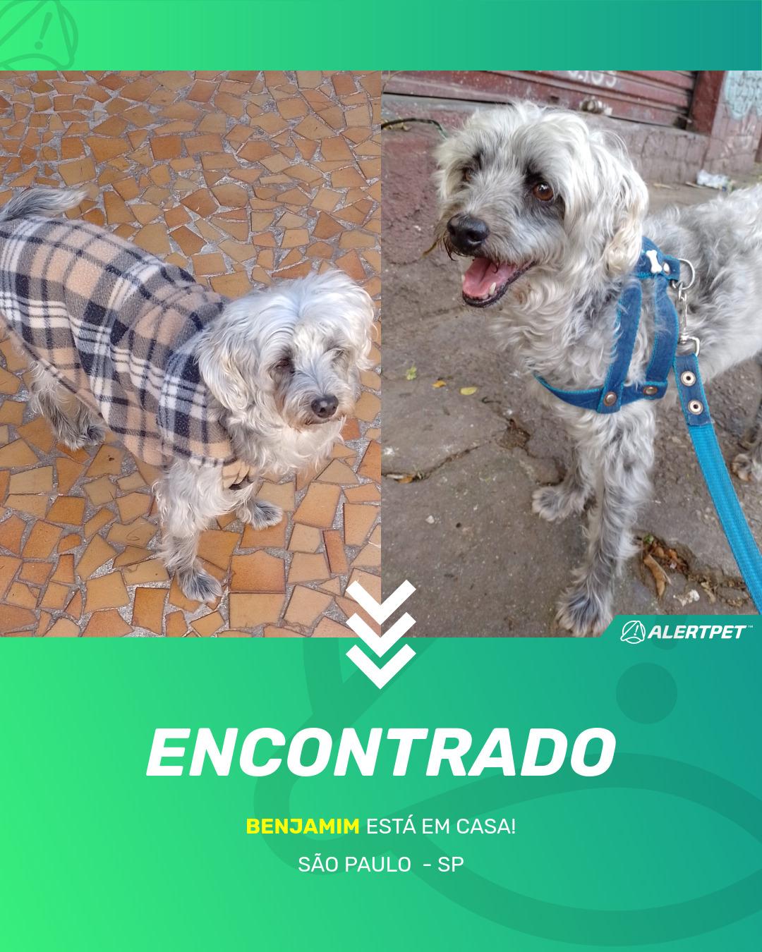 Depois de dois meses a cadelinha foi finalmente localizada graças a um anúncio da AlertPet