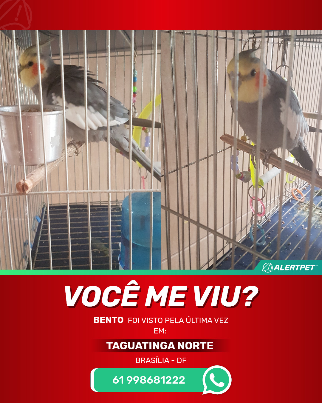 #AlertPet #Procurase #PassaroDesaparecido #Brasilia #ProcuramosBento