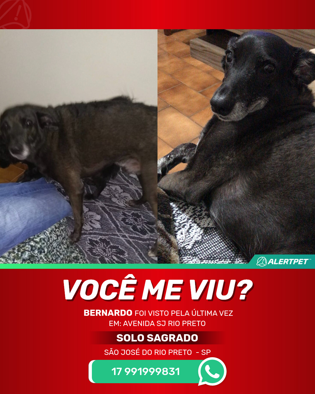 #AlertPet #Procurase #CachorroDesaparecido #SaoJoseDoRioPreto #ProcuramosBernardo