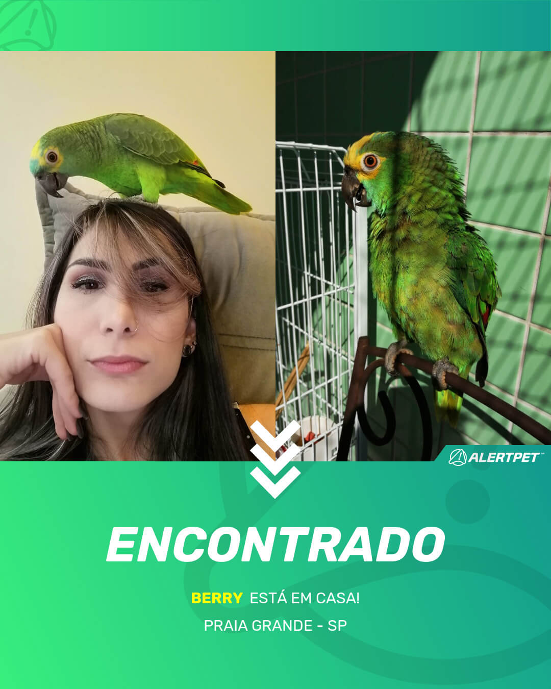 Depois de dois meses a cadelinha foi finalmente localizada graças a um anúncio da AlertPet