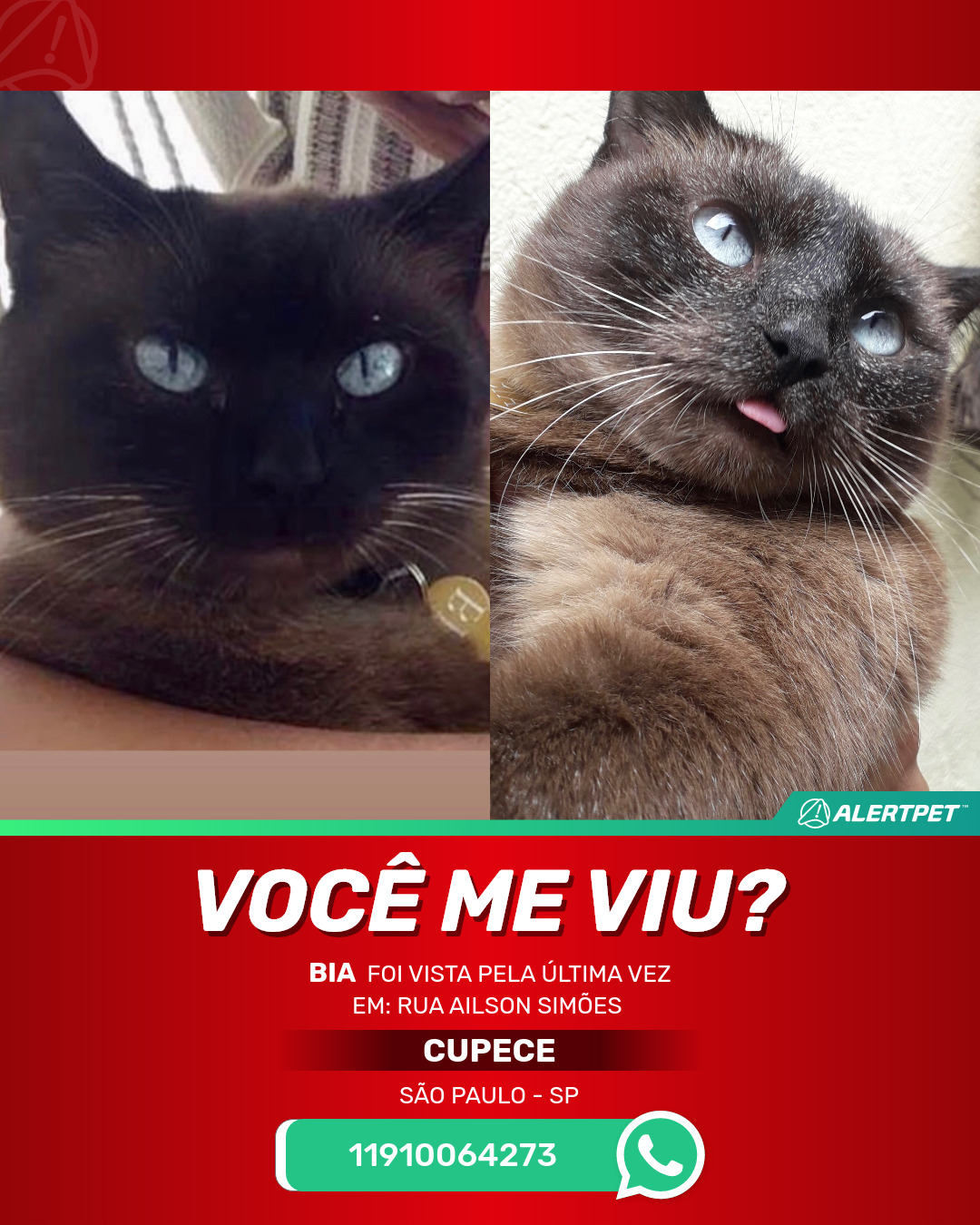 #AlertPet #Procurase #GatoDesaparecido #SaoPaulo #ProcuramosBia