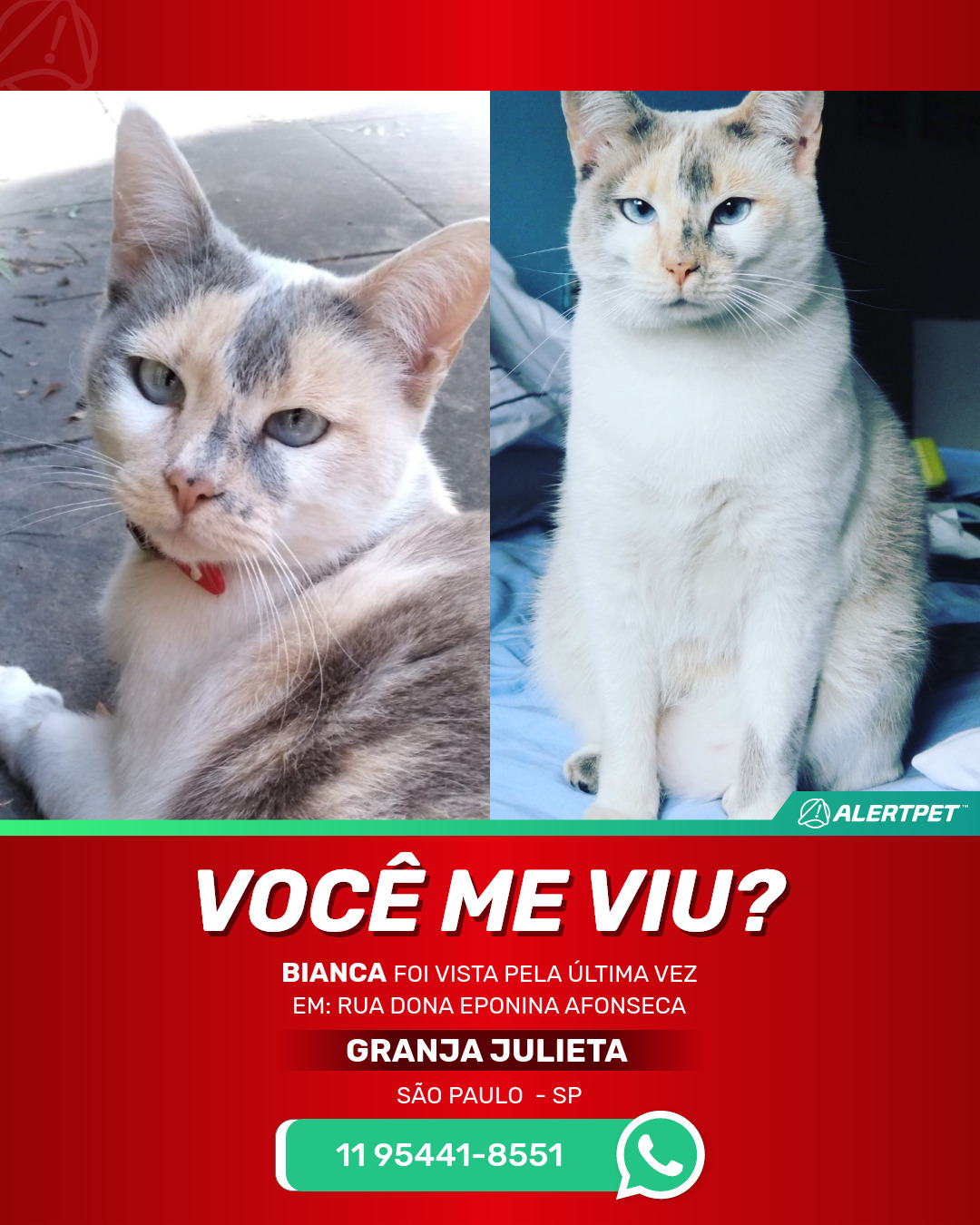 #AlertPet #Procurase #GatoDesaparecido #SaoPaulo #ProcuramosBianca