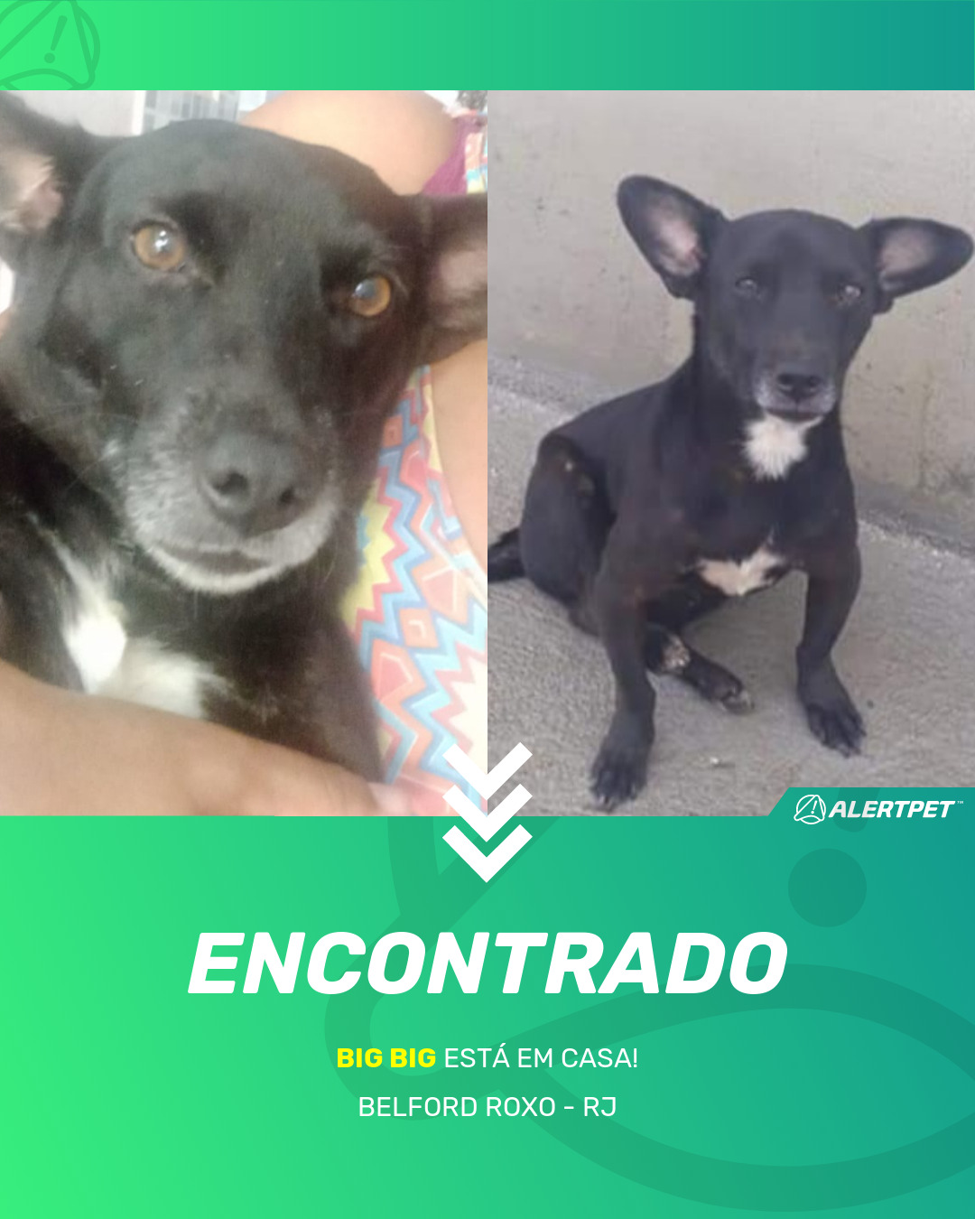 Depois de dois meses a cadelinha foi finalmente localizada graças a um anúncio da AlertPet