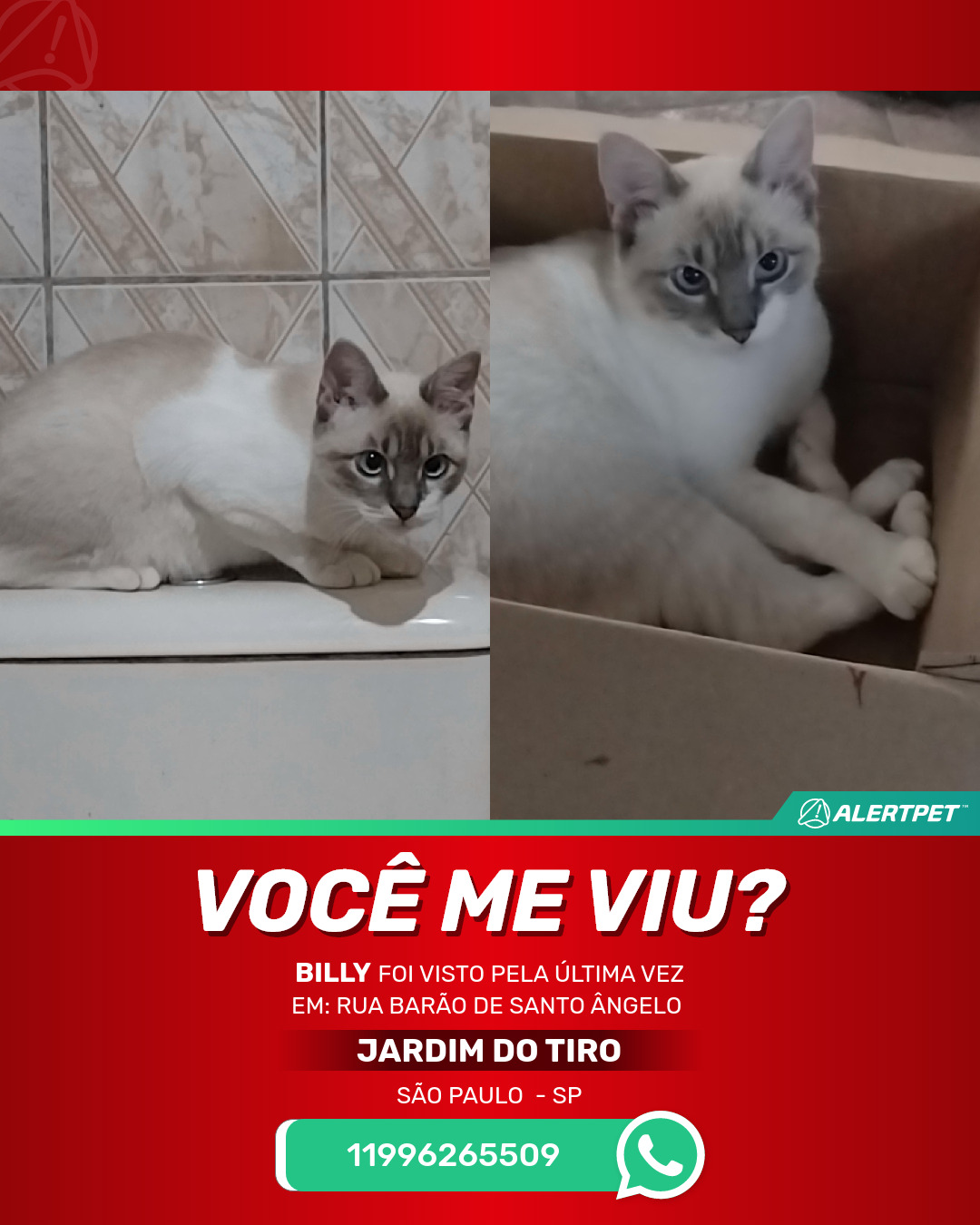 #AlertPet #Procurase #GatoDesaparecido #SaoPaulo #ProcuramosBilly