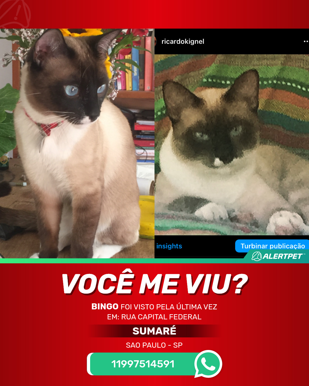 #AlertPet #Procurase #GatoDesaparecido #SaoPaulo #ProcuramosBingo