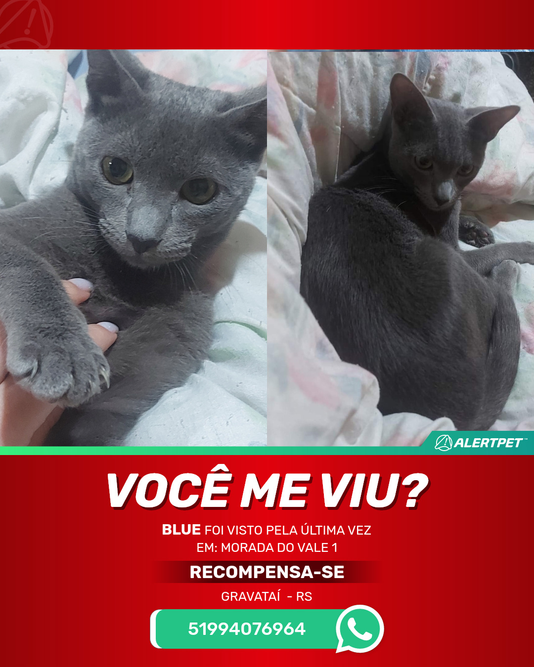 #AlertPet #Procurase #GatoDesaparecido #Gravatai #ProcuramosBlue