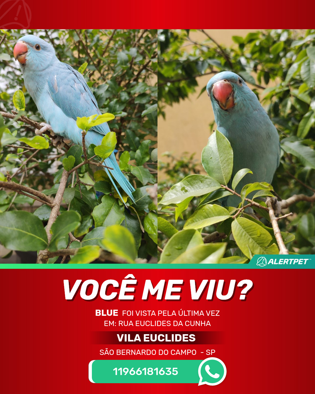 #AlertPet #Procurase #PassaroDesaparecido #SaoBernardoDoCampo #ProcuramosBlue