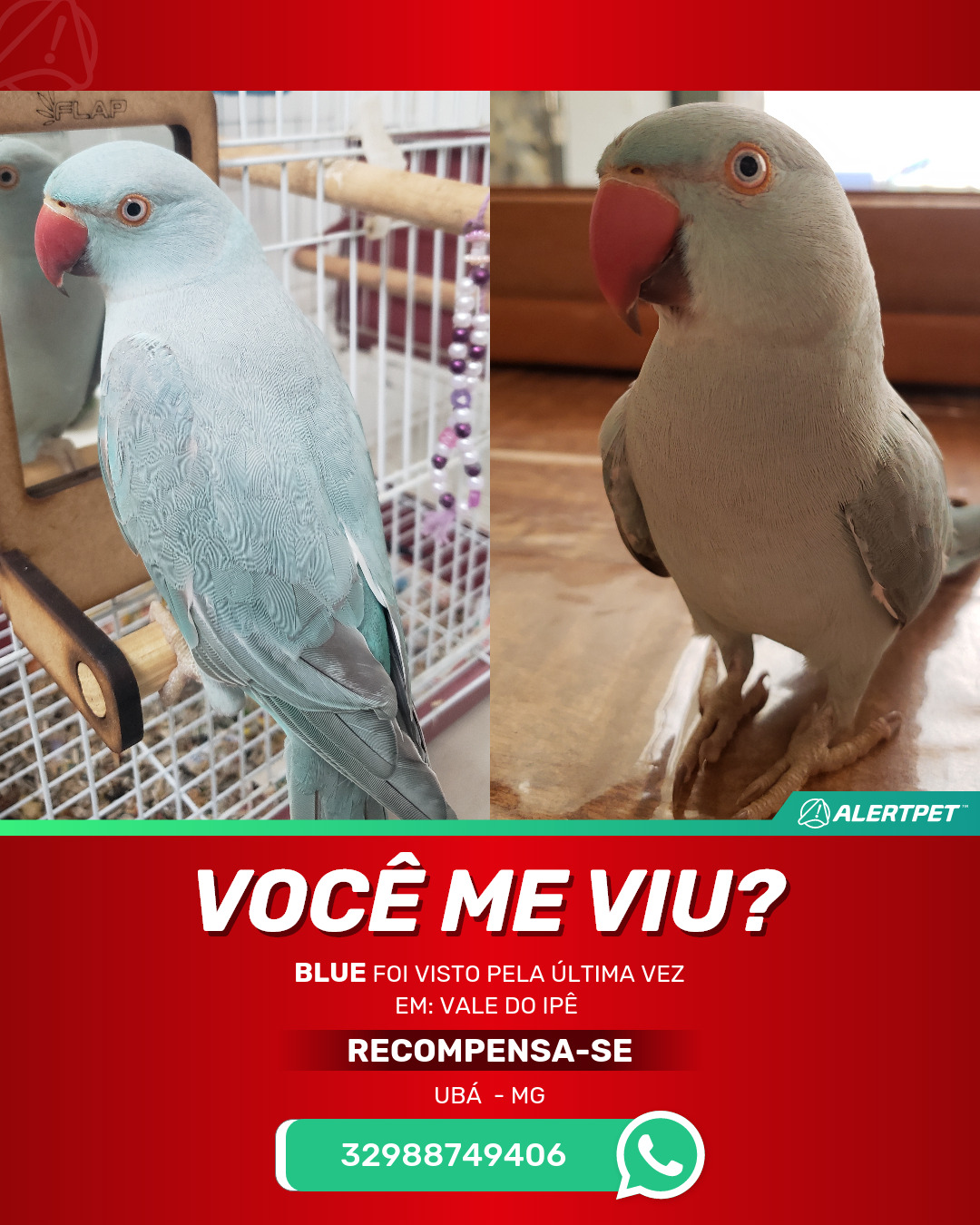 #AlertPet #Procurase #PassaroDesaparecido #Uba #ProcuramosBlue