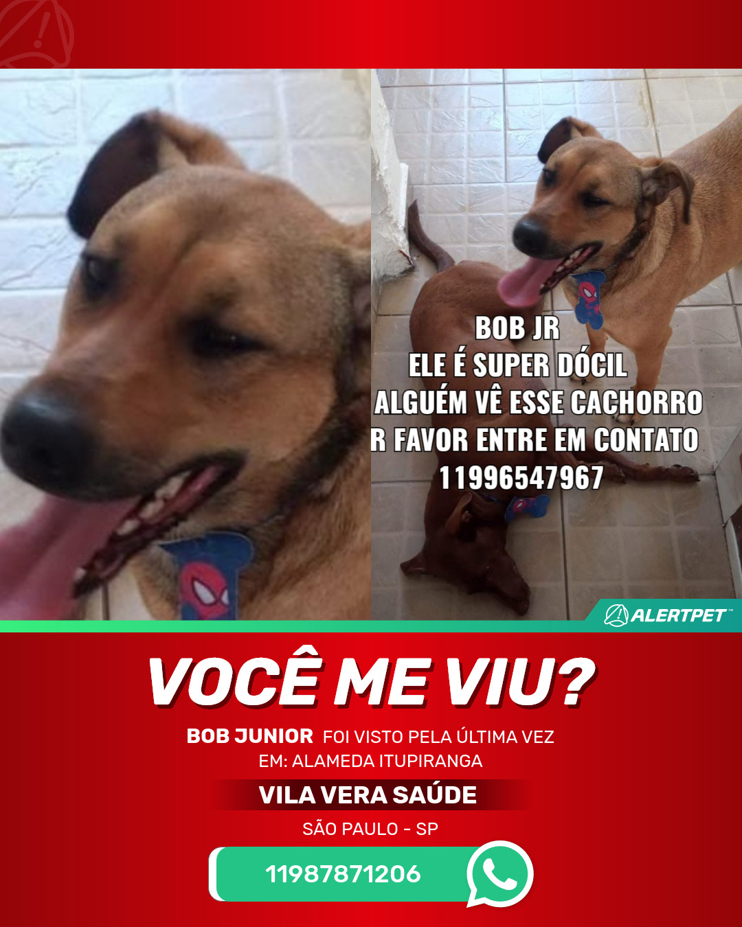 #AlertPet #Procurase #CachorroDesaparecido #SAoPaulo #ProcuramosBobJunior