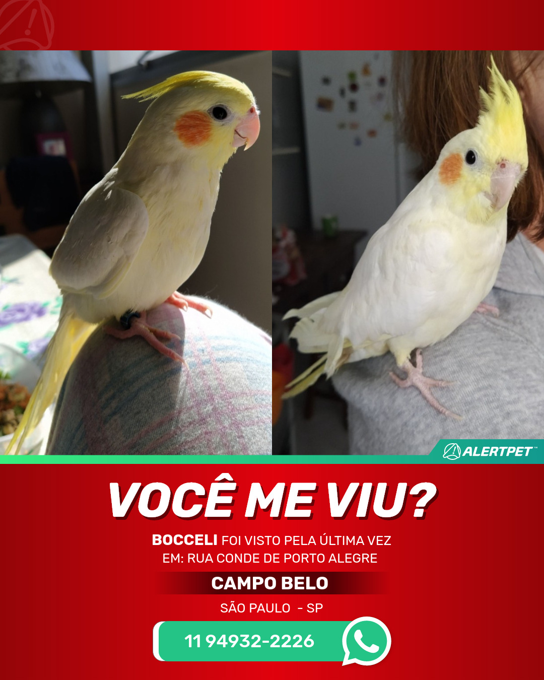 #AlertPet #Procurase #PassaroDesaparecido #SaoPaulo #ProcuramosBocceli