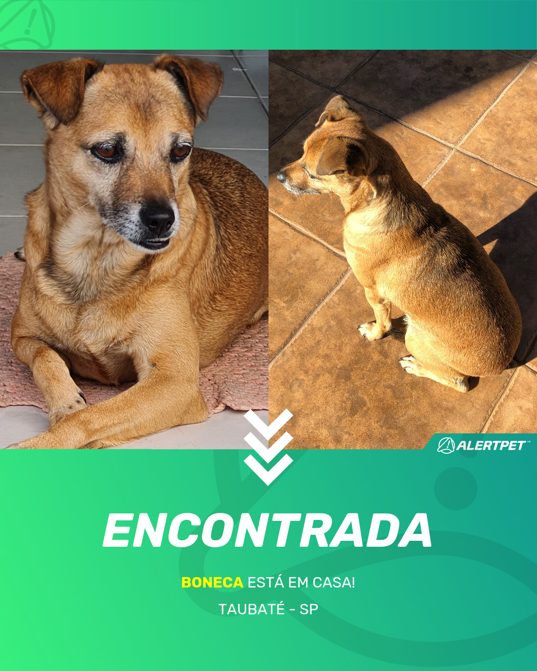 A Boneca é uma cachorrinha dócil e idosa, que não tem o hábito de sair sozinha pelas ruas, o que pode indicar que ela esteja assustada. É de porte médio, tem 12 anos, pelagem caramelo com alguns pelos brancos no focinho. Desapareceu por volta das 16h do dia 14/12/2023, quando fechamos o portão sem perceber que ela saiu. Apesar de termos procurado em toda a vizinhança, infelizmente ainda não conseguimos encontrá-la. Devido à idade, ela se cansa rapidamente e requer uma alimentação especial (sênior).