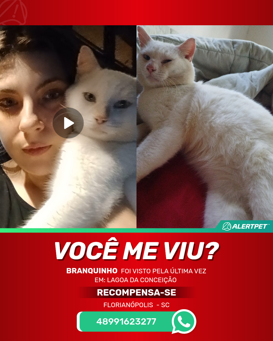 #AlertPet #Procurase #GatoDesaparecido #Florianopolis #ProcuramosBranquinho