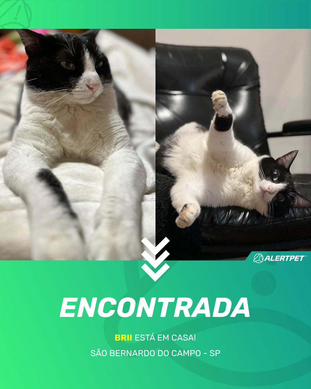 A Bri é minha companheirinha, ela tem mais dois irmãos gatos e dois irmãos cachorros, eu estou sem chão longe dela. Espero que esse anúncio possa ajudar a chegar na pessoa que está com ela e que ela esteja protegida. Deus abençoe vcs que cuidam desses animais e se importam com a gente que sofre de saudade.