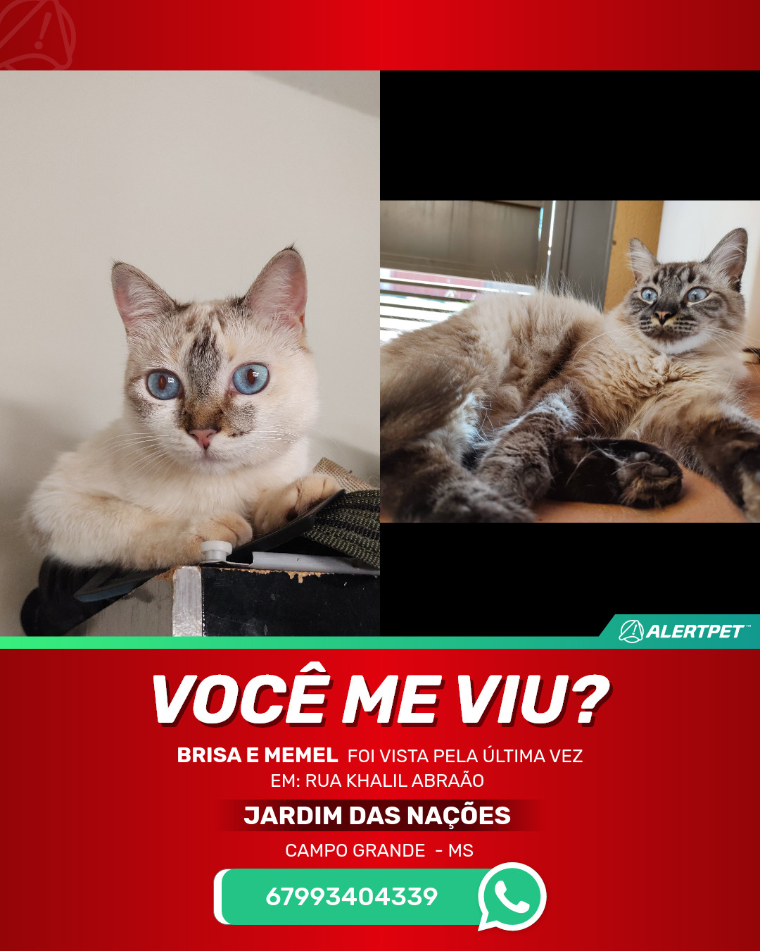 #AlertPet #Procurase #GatoDesaparecido #CampoGrande #ProcuramosBrisaEMemel