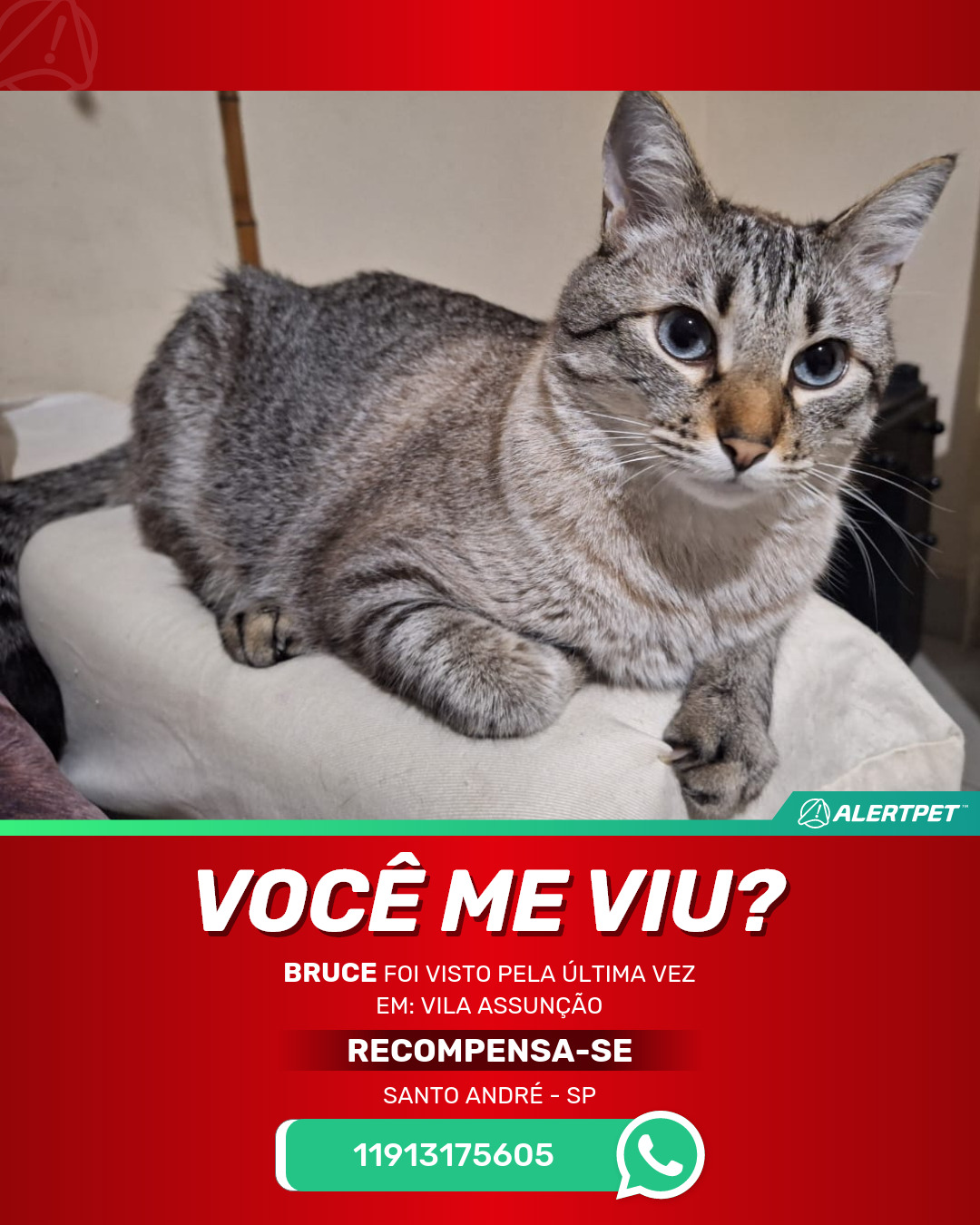 #AlertPet #Procurase #GatoDesaparecido #SantoAndre #ProcuramosBruce